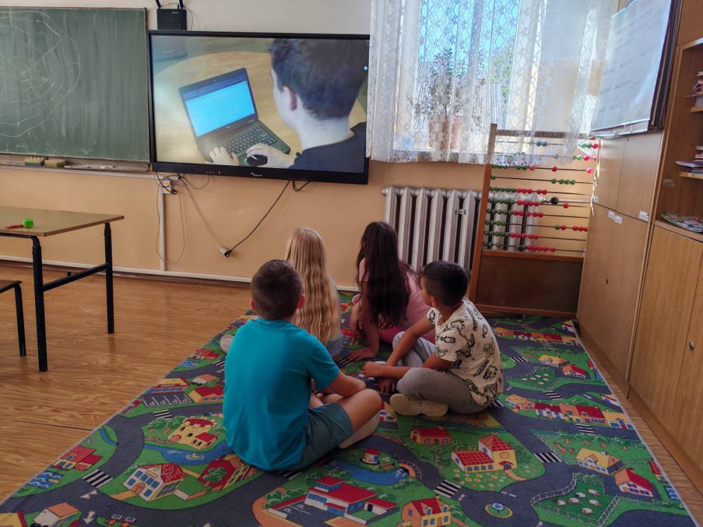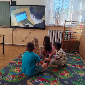 Następnie odbyła się rozmowa z uczniami, podczas której dzieci dzieliły się swoimi doświadczeniami i zadawały pytania. Wspólnie omówiono różne sytuacje, które mogą się przydarzyć w sieci, i sposoby ich bezpiecznego rozwiązania.