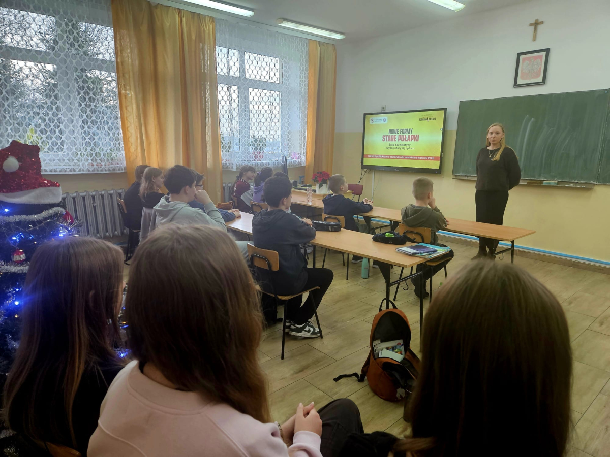 W klasach IV–VIII odbyła się lekcja edukacyjna pt. „Nowe formy – stare pułapki. Życie bez nikotyny – wybór, który się opłaca”. Zajęcia miały na celu zwiększenie świadomości uczniów na temat zagrożeń związanych z używaniem nikotyny.