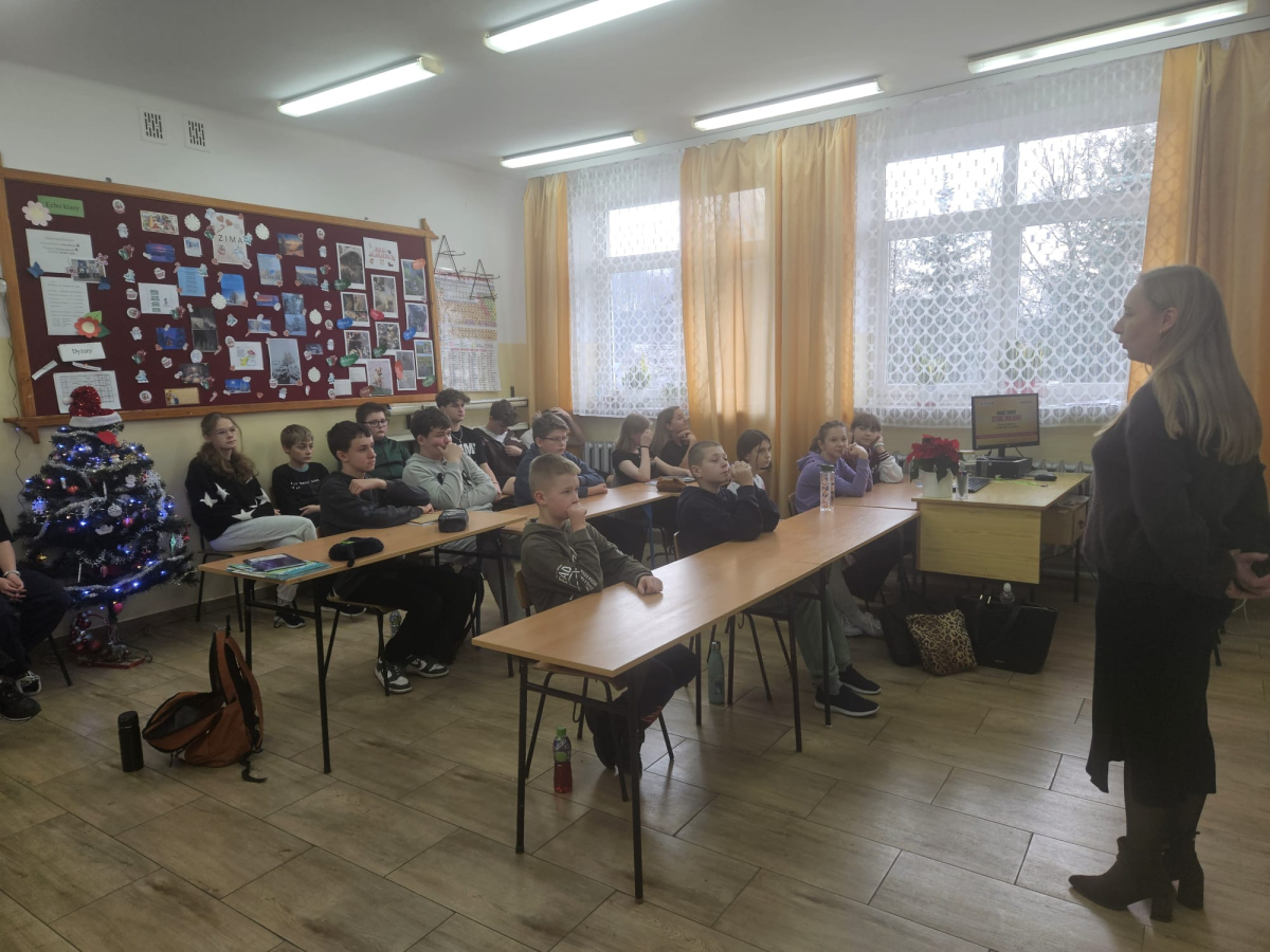 10 grudnia w naszej szkole odbyły się zajęcia edukacyjne prowadzone przez pracownika Powiatowej Stacji Sanitarno-Epidemiologicznej w Janowie Lubelskim. Spotkania zostały zorganizowane dla dwóch grup wiekowych i dostosowane do ich potrzeb oraz poziomu wiedzy.
