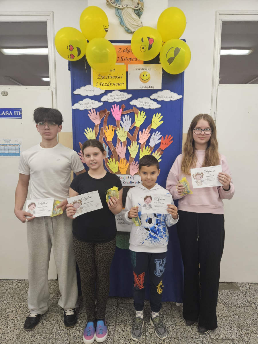 Już po raz kolejny w dniach 17 - 21 listopada obchodziliśmy w nasze szkole Światowy Dzień Życzliwości i Pozdrowień. Dzień Życzliwości i Pozdrowień to wspaniały moment do przypomnienia, ile w naszych codziennych relacjach znaczą proste słowa: proszę, dziękuję, przepraszam, dzień dobry, miłego dnia, a także jak cudowną i ciepłą atmosferę wprowadza serdeczny uśmiech na twarzy.