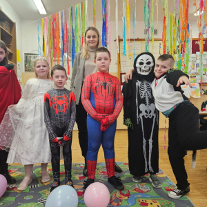 28 listopada w klasach 1 i 3 odbyła się wyjątkowa zabawa andrzejkowa. Już od samego rana w szkole panował niezwykły nastrój, ponieważ dzieci przyszły ubrane w kolorowe stroje i fantastyczne przebrania,a sala została ozdobiona dekoracjami. Dzieci brały udział w licznych atrakcjach, a najwięcej emocji wzbudziły wróżby przygotowane w formie zabaw. Wszystkie wróżby miały radosny, humorystyczny charakter, dzięki czemu dzieci podchodziły do nich z uśmiechem i dużą ciekawością.