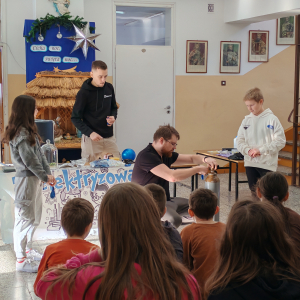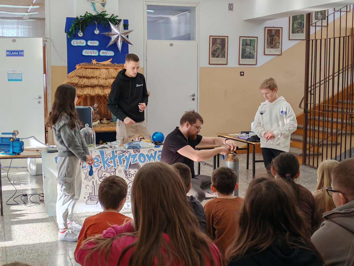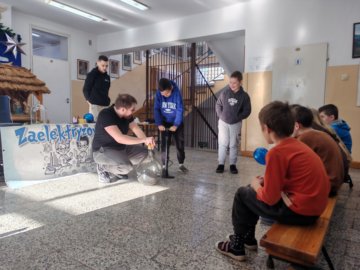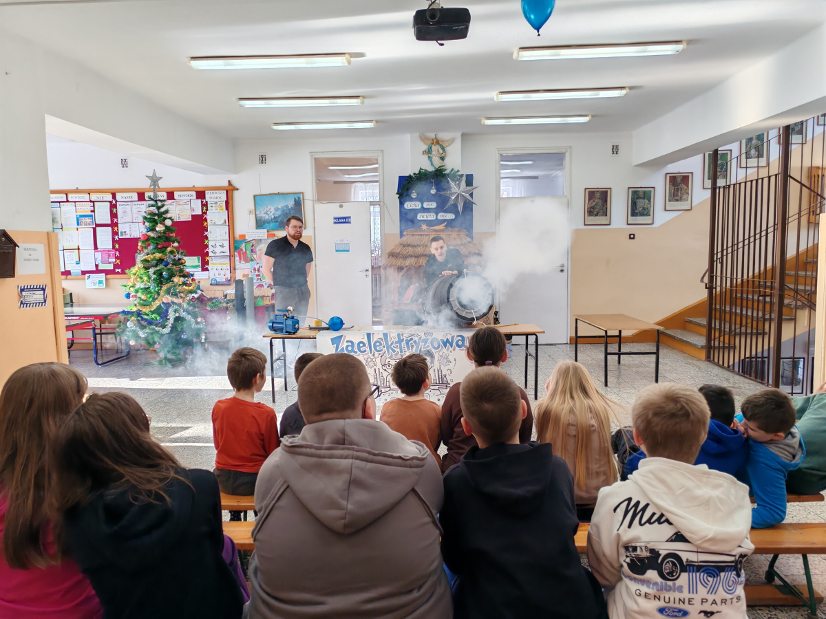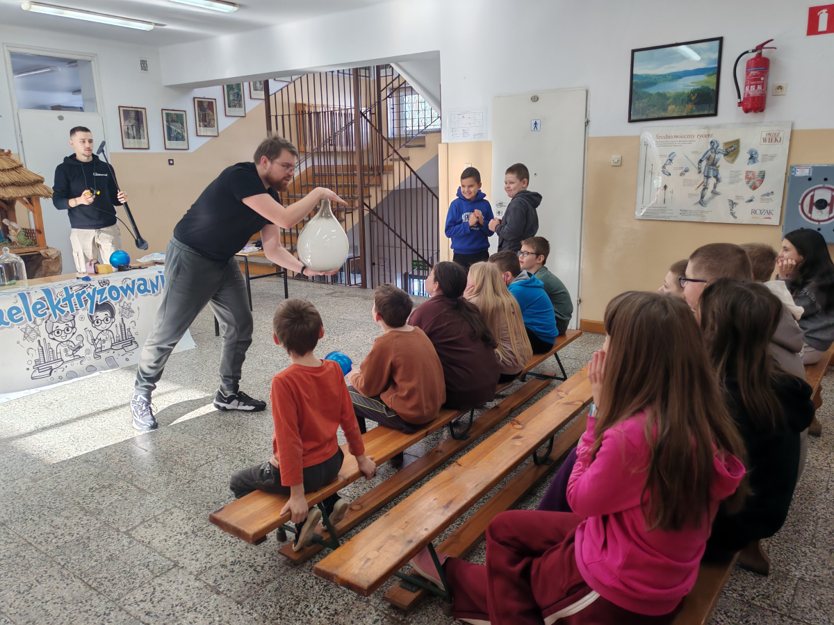 Dnia 2 lutego naszą szkołę odwiedziła grupa edukacyjna „Zaelektryzowani”, która zaprezentowała uczniom niezwykle interesujące i pełne energii zajęcia z zakresu nauk przyrodniczych. Spotkanie miało formę interaktywnego pokazu, podczas którego uczniowie mogli nie tylko obserwować doświadczenia, ale również aktywnie w nich uczestniczyć.